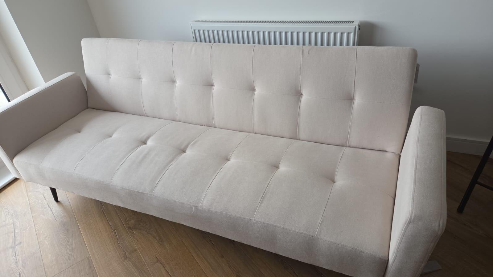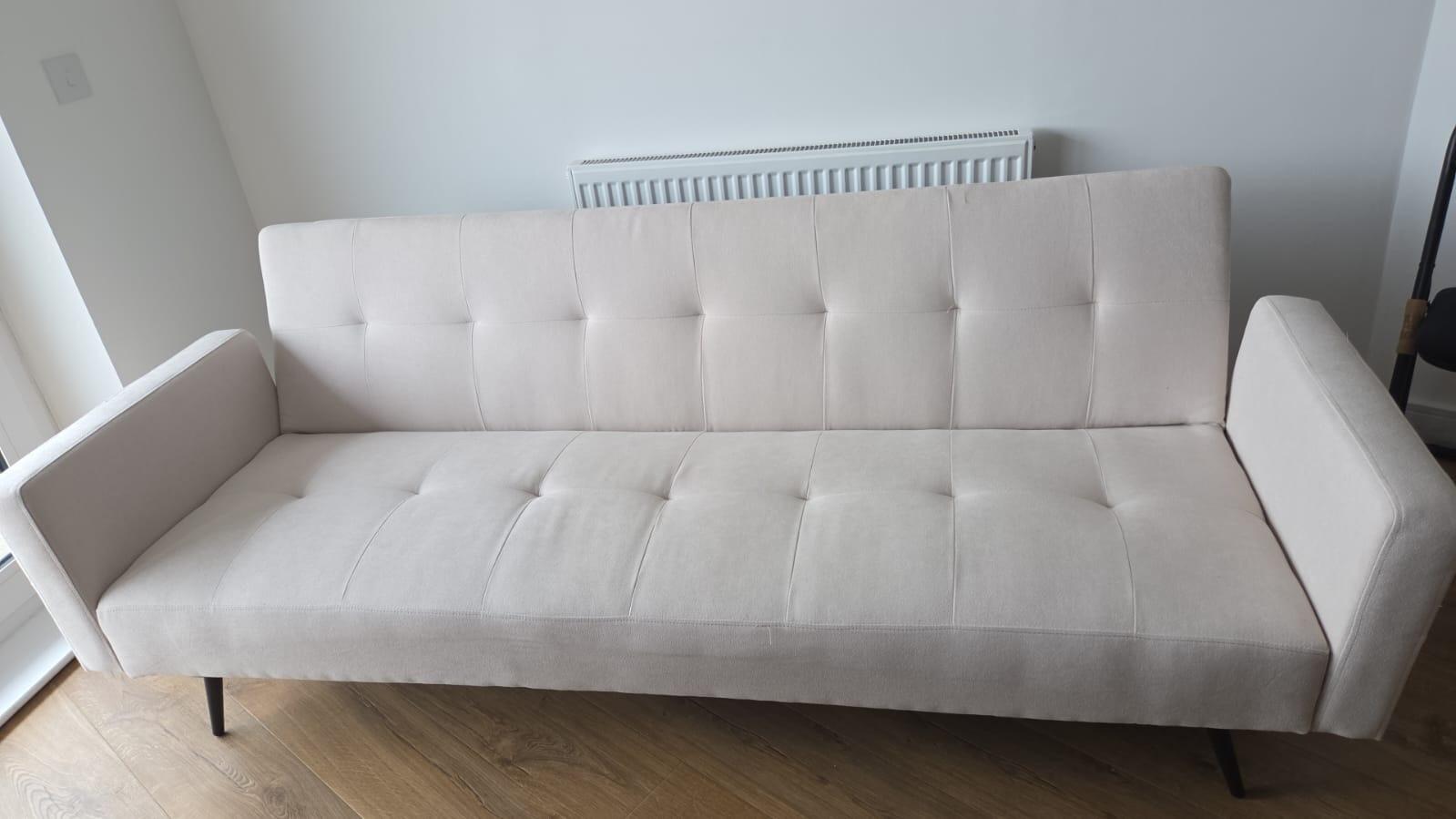 he Hayle Sofa Bed features a clever multi-position clic-clac mechanism, effortlessly transforming from a stylish sofa into a large single bed. Perfect for kids, guests, or occasional use, it offers versatility and comfort. Plus, you can remove an armrest for extra legroom, making it a practical and space-saving solution for any modern home.